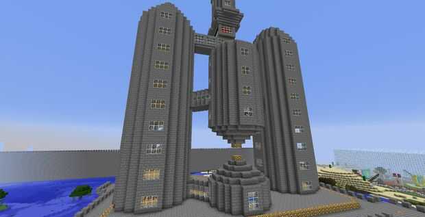 Las torres son 17 cuadras de diámetro, en medio de la parte superior de la base. Terminan siendo 5 cuadras de distancia de los lados. Cada torre de altura contiene 10 plantas (alta a 3 cuadras) y 60 cuadras en todos. En el piso uno, hay un túnel que conduce a la torre pequeña en el medio. Es 13 cuadras de diámetro y a 6 cuadras de la parte delantera de la base. Es donde todo el material precioso almacenan (hierro, oro, diamante, esmeralda, etc..) En la 6ª planta, hay un túnel que conduce a la torre de altura en el centro. Que contiene el el horno y una enorme sala encantadora.
