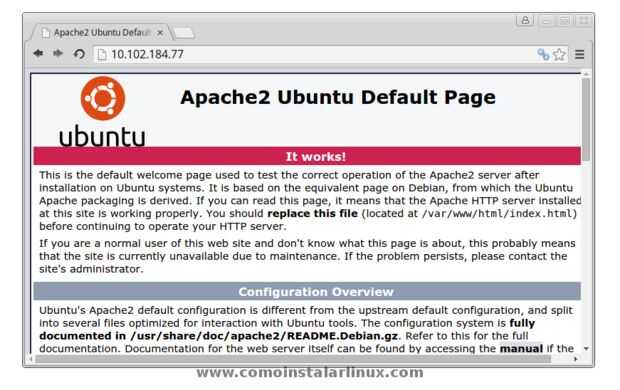Ahora simplemente abra un navegador web y escriba la dirección IP del nuevo servidor de ubuntu.