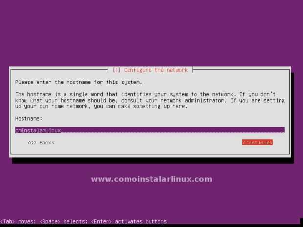 Ahora usted debe dar un host nombre, nombre de dominio, nombre de usuario completo, nombre de usuario y contraseña.
