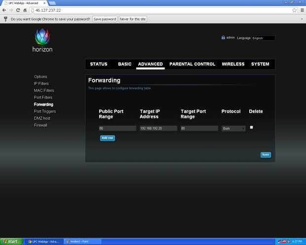Para probar el servidor web dentro de tu LAN, conectar un PC o portátil a la red, abra un navegador de internet y escriba la dirección IP que dio allí el código. (En mi caso 192.168.1.200). Debe aparecer la pantalla de bienvenida del servidor Web. En el éxito, puede intentar acceder a él desde "fuera". Para ello debe configurar primero el router/módem para poder reenviar el puerto 80. Tienes que iniciar sesión y permitir el reenvío de puerto para HTTP. Cómo que usted puede encontrar en el manual del dispositivo. Tengo caja de medios "Samsung" horizonte - router. La imagen muestra el puerto de configuración de reenvío. Después de este paso, usted tiene que encontrar su dirección IP de gateway por defecto. En Google escriba "whatismyip". Haga clic en el primer resultado de búsqueda. Te dará tu IP real. Ahora, usando un dispositivo, que no está conectado a la LAN (por ejemplo GSM con conexión GPRS o 3G), pero tener un acceso a internet, tipo tu IP puerta de enlace en el navegador de internet. Puede ser que será necesario también añadir el puerto. Si todo es correcto, debería poder acceder a su servidor Web.