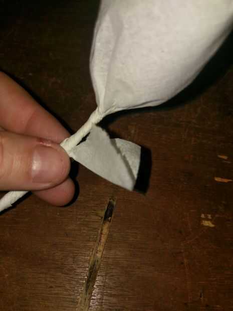 Continuar girando el tallo (Foto 1) hasta llegar a la parte inferior (Foto 2). Doble con cuidado el pedazo rasgado por la mitad para crear la hoja.