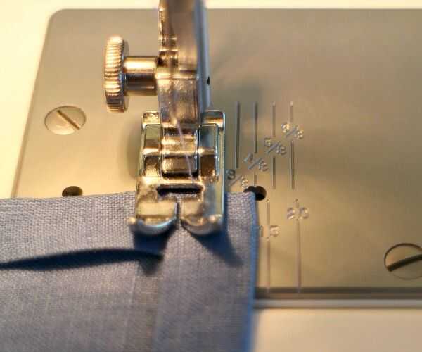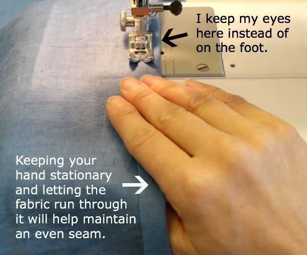 Consejo: como en la foto, mantuve mi mano derecha inmóvil, permitiendo que la tela se deslice a través del cual ofrece mucho control y una costura uniforme. Otro Consejo que tengo para lograr una costura uniforme es centrarse en la línea de 4/8 en vez de la media del pie y la aguja de hilo. Me encuentro tratando de concentrarse en un punto móvil en el centro, frente a un borde, mucho más difícil y menos visualmente claro.