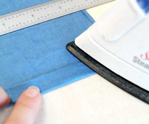 Ahora, sin utilizar la regla (con la posición de vapor todavía OFF), un 5/8" el doblez en dos bordes opuestos de la primera servilleta de hierro.