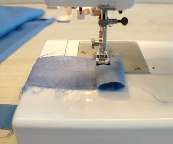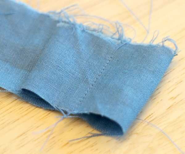 Llene su bobina y su máquina de coser con su color de elección del hilo de rosca y usando un pedazo de tela, hacer un tríptico (recrear su borde dobla) y prueba de la puntada y el hilo de la tensión hasta que estés satisfecho con los resultados. Porque mi ropa era muy ligera, opté por utilizar una puntada pequeña (2.5) y estaba super contento con cómo salió.