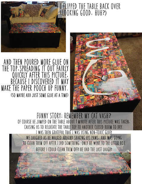 Quería llegar las imágenes alineadas a cuadrado con el borde de la mesa, así que vertieron un poco de pegamento y utilizar mi cepillo de espuma para alisar hacia fuera, luego rodó un poco de papel de embalaje mientras que algunos de los bordes de las tapas de ficción de la pulpa con donde me sentía al borde de la mesa fue alineado.