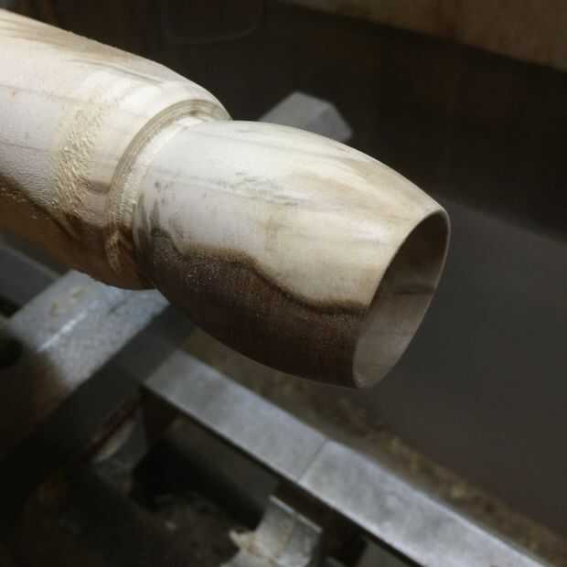 Con una pinzas medido cuánto quería OD en los extremos del producto final. Entonces usé esa configuración a cortar para diámetro de ambos extremos. También tuvo una segunda pinzas y mide el diámetro de la media. Usé esta en cada uno de lo siga en anillos para asegurarse de que todos parecían similares. Una vez estaba contento con la forma general, retrocedió a la acción de la cola y lijar el exterior y el interior del anillo. Decido utilizar cera de abeja para este proyecto porque produce un acabado suave y totalmente es caja fuerte del alimento. Una vez que se aplicó cera de abeja que era tiempo de parte del anillo. Utilizando una mano para controlar un pequeño sesgo usé mi otra mano para coger el anillo una vez que se separaron.