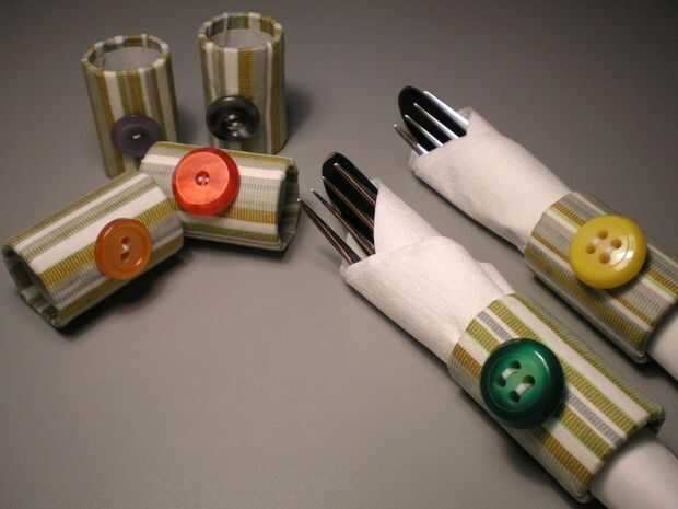 http://www.merrimentdesign.com/recycled-fabric-napkin-rings-from-Saran-Wrap-tubes.php