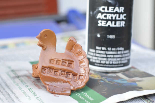 Rocíe su arte con un aerosol de acrílico transparente en un área bien ventilado. Déjelo secar. Un pensativo además a su mesa!!!!