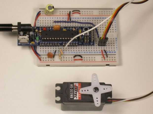 Si utilizamos un voltaje inferior como referencia para el ADC, podemos aumentar la gama que realiza el ADC. Según las últimas arduino analogReference() Notas [http://arduino.cc/en/Reference/AnalogReference], cualquier voltaje que se aplica al pin ARef se divide nuevamente por un resistor interno de 32 K. Su ejemplo utiliza un 2, 5V de entrada a la A-Ref, y arduino ve 2,2 v en lugar de otro. Con un alto voltaje de la referencia de 2,2 v, la conversión tiene ~2.1mV por paso, y la gama de los comentarios del servo hackeado sería 700 pasos. Es más como él. La llamada a analogReference(EXTERNAL) dirá el arduino para mirar el pasador A-Ref para la medición de valores analógicos. Felizmente, la llamada a analogReference(DEFAULT) ajustar la tensión de referencia analógica a una fuente interna (~ 5V o ~3.3V dependiendo de su energía de la fuente), por lo que puede mover hacia adelante y hacia atrás leer sensores que necesitan la gama completa de 5V trabajar ;)