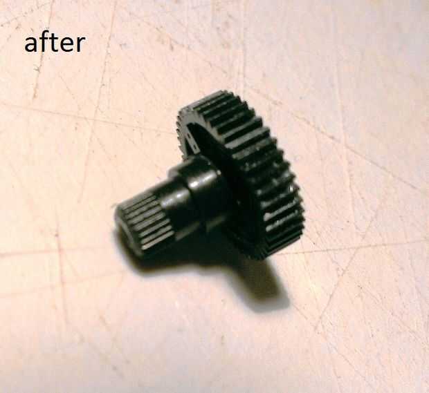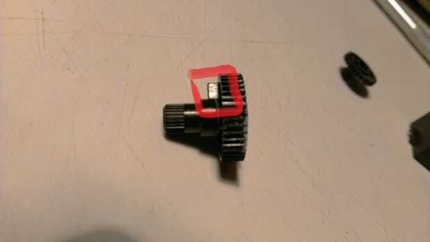 En caso de que aún no hecho todavía, capas de la parte superior de la caja de servo. Uno de los engranajes tiene un pomo pequeño, cuidadosamente corte lejos (también, tenga en cuenta que tendrás que volver a montarlos).