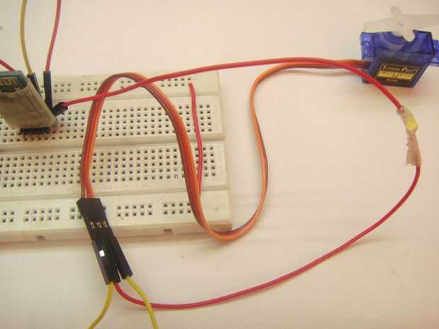 Te aconsejo que coloque la parte superior del servo para que fácilmente se puede ver el movimiento del servo. El motor de servo es un motor muy importante. Conectar el gnd del servo a linkit un gnd, vcc del servo a vcc de junta y vout del servo al pin digital 9.