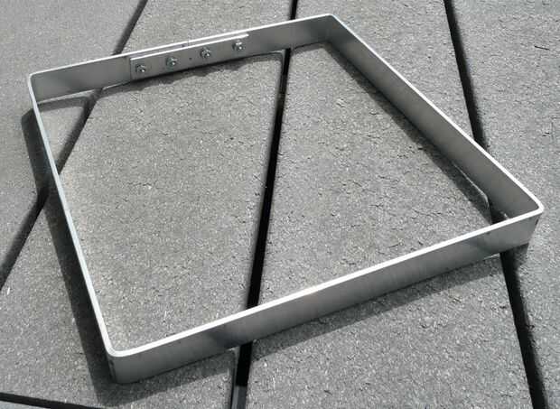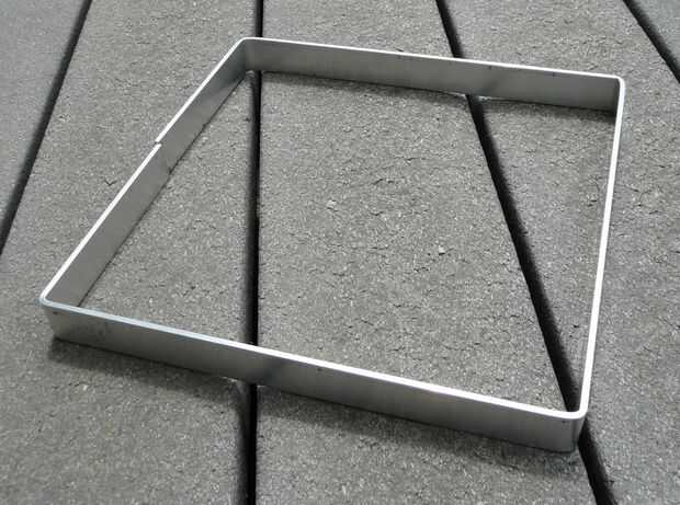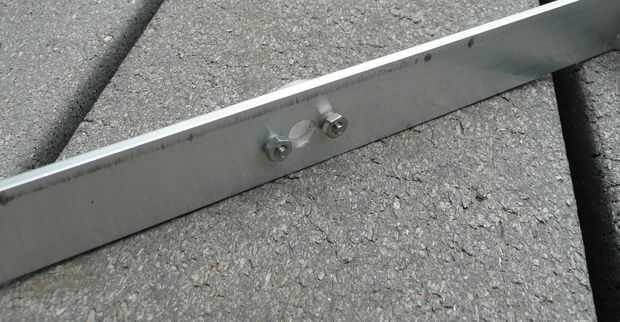 Una vez que fue doblado en forma, utilizamos un pedazo más pequeño para unir los extremos y utiliza 4 tornillos #6 para sostener con tuercas y arandelas de presión de fractura.