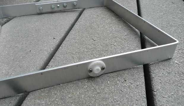 En el medio donde hemos utilizado la placa pequeña para unir los extremos, coloca un perno de 1" #6 hacia fuera del ring. Este será el pivote para el eje X.