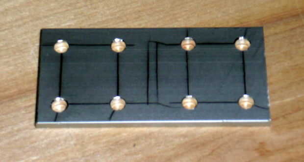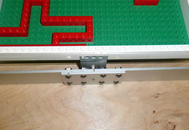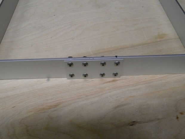 Para participar en el bucle, utilicé 1.5" pedazo de barra y agujeros perforados 3/6" y usados #8-32 1/2" tornillos largos con tuercas de seguridad. Perforado el 8 agujeros en la pieza de Unión en primer lugar, luego remontar esos agujeros en el eje Y, tendido en una mesa para hacerla se alinean muy bien. Con el enfoque de soporte de esquina, este paso no sería necesario.