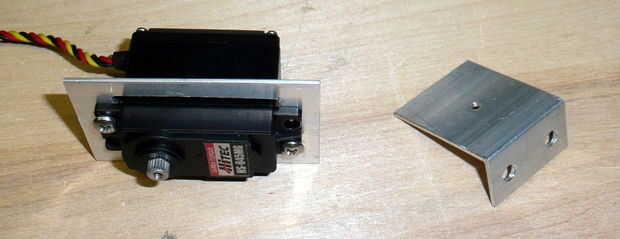 En el lado opuesto del servo, en la escuadra de Unión, perfore un agujero de 7/64" para el pivote caber en a.