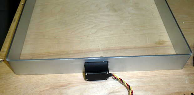 Para este proyecto, el eje Y fue 11,25 "x 12". Para el enfoque de flexión, partí uno de los lados de 12" para soporte. En mi caso, con el 1/8" Unión metálica frente al servo permitido equilibrar muy bien para que el servo no necesita luchar mantenerlo nivelado.