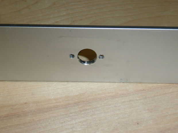 En un lado del eje de las Y, el servo para el eje Z debe montarse. Trazó el contorno de servo, asegurándose de que el cuerno del servo estaba en medio de la cara. El cuerpo del servo será un poco fuera de serie. Luego utiliza una herramienta Dremel para cortar el rectángulo y cuadrado y liso había presentado. Para montar el servo, usé el servo sí mismo como un guía y dos 7/64" orificios para los tornillos #6-32 para montarlo. Utilicé un tornillo, una arandela de split y una tuerca para mantenerlos - no había espacio suficiente para una arandela plana.