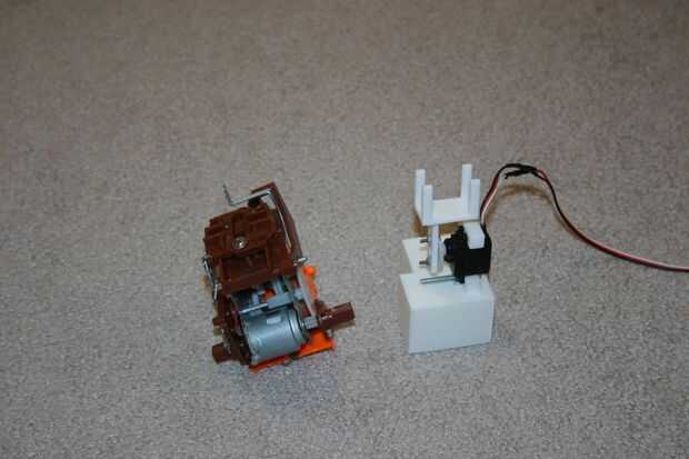 El mecanismo de impresión 3d acepta un pequeño servomotor como un Futaba s3153
