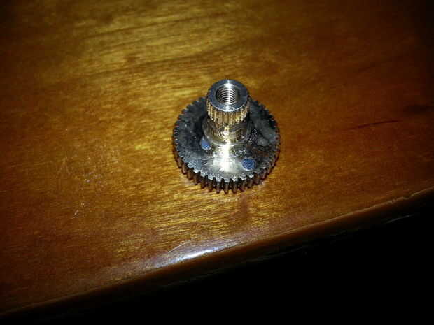 C) la marcha tendrá un "pedazo" que debe ser archivado apagado o corte de con un par de pinzas de corte al ras Si tienes engranajes de nylon. Mina era un clavo de acero presionado en el engranaje de bronce que sólo tuvo 5 minutos para limar pero asegúrese de que no presentar alguno de los engranajes de latón, en accidente.
