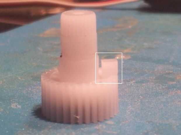 Nadie te da algo por nada, encontré un problema mayor en el equipo. Porque estos servos se hacen girar a más de una fracción de vuelta, tienen alguna manera para evitar que gire más de lo necesario. Puedes ver un poco los dientes que se detiene en una correspondiente en el caso. Pero como en este caso también hay algunos dientes que faltan o más en detalle echa de menos el espacio entre dos dientes!