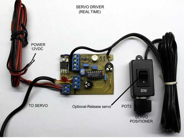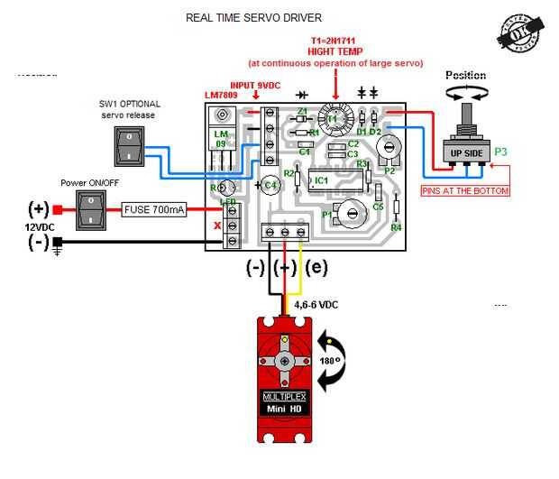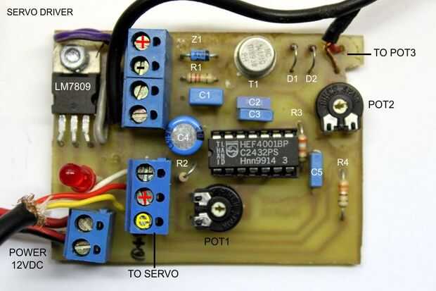 P2 = 47 k establece el punto neutro del servo. Ajustar de esa manera por lo que cuando el servo se ha establecido cualquier posición permanecerá bloqueado hasta ese punto.