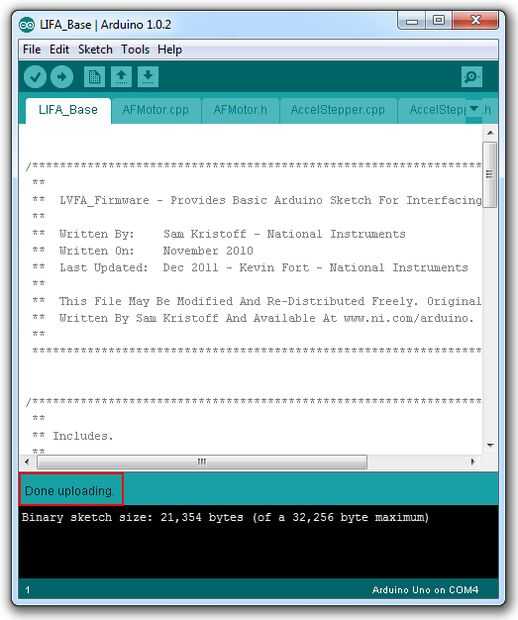 Este Firmware es necesario para sus comunicaciones de servo con LABVIEW. Si no subes este Firmware tus servos no responde en tiempo real.