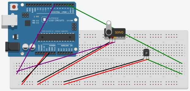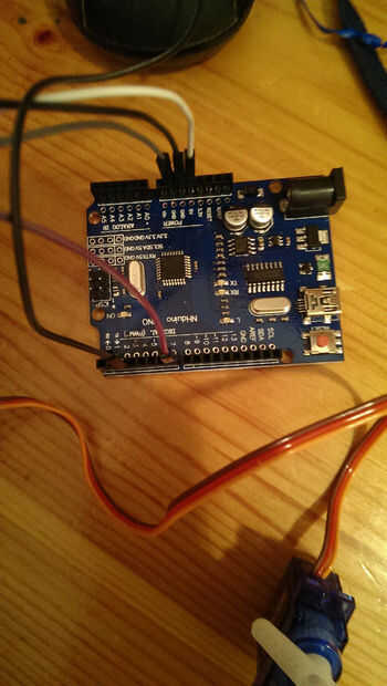 Mañana subiré las fotos. Para hoy creo que esta ilustración, es tan buena como fotos, o incluso más. Básicamente he conectado los 5V de la placa a 5V de Servo y el PIR de movimiento ensor 5V. Mismo sobre la tierra. En cuanto a la entrada de pin en el servo que he conectado a un pin digital de Arduino (mina era pin 7), y los datos de sensor de movimiento PIR de salida a otro pin digital de Arduino (mina era pin 2).