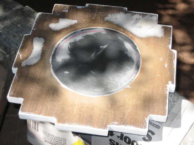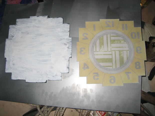 Una cartilla de madera fue utilizado primero (esta es la bata blanca que se ve en las fotos) seguido por una capa negra en los bordes ya esta emparejado los contornos del diseño.