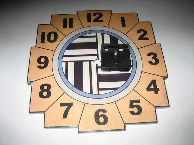 Los bordes deben ser pintada para combinar con el diseño del reloj. Si la madera es de color bastante oscuro, pero el diseño es brillante y luego la madera necesita pintado blanco o un color más claro.