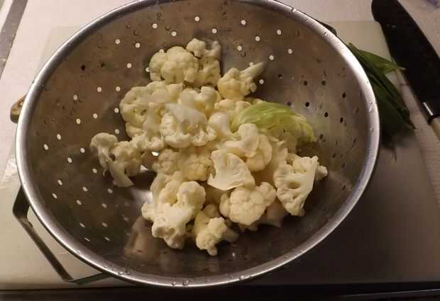 - Lavar la coliflor, cortado en floretes, pat seco y dejar de lado.