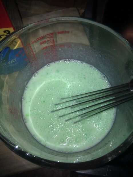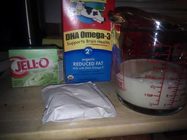 Mida la ingreients para su pudín instantáneo. Siga las instrucciones para hacer rellenos de pasteles, como esto generalmente requiere menos líquido que con leche regular. Bata hasta que la mezcla haya espesado y puede ser recogida en la tarta.