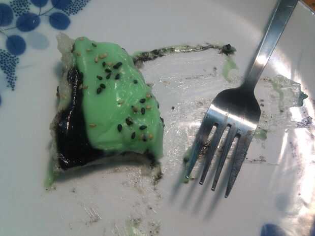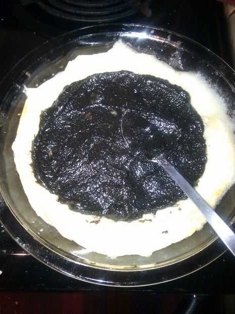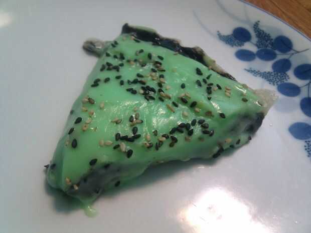 Suavizar el relleno sobre la pasta de sésamo. Espolvorear la parte superior con semillas de sésamo y refrigere.