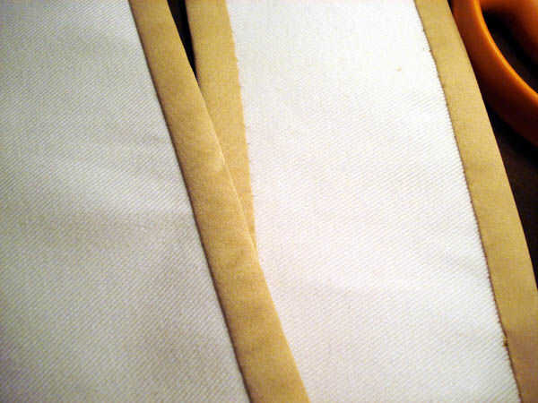 puede comprar cinta de biés en cualquier craftyplace por menor para $2 y cambiar (mas gas).  También puede solicitar en línea de cinta de bies, pagando un coste de envío ridículos (o esperando para siempre a llegar).  Sin embargo, comercial cinta es