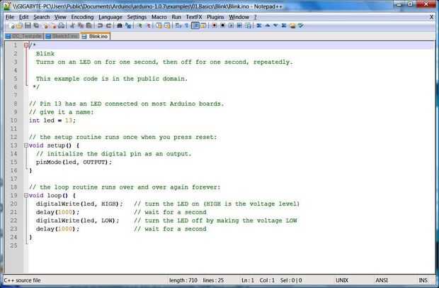 Comentario: Después de todo / * antes * / es un comentario. Como en este ejemplo, esto puede prolongar en varias líneas. (Bloc de notas ++ pone en verde). Comentarios son ignorados por el compilador y no se envían a la Arduino.