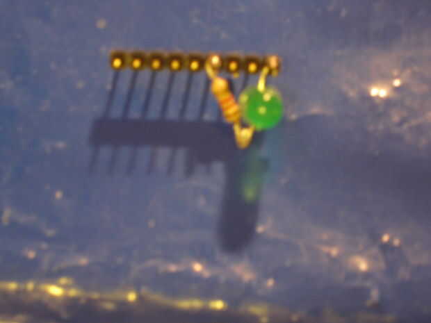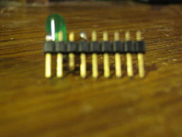 Usé un encabezado macho de 9 pines, una resistencia de 1,2 K ohmios y un LED verde.