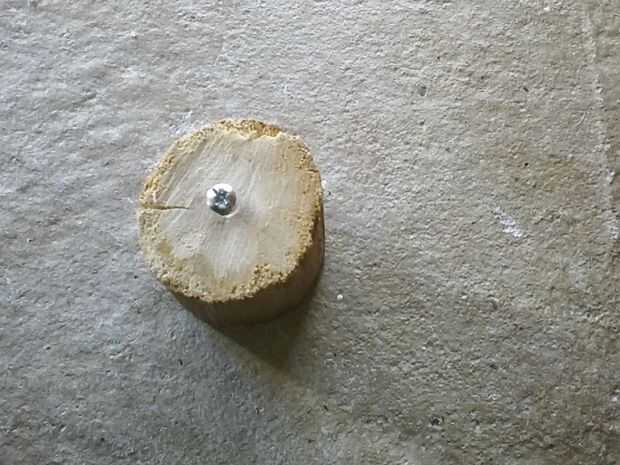 Poner el pegamento en el agujero y el tornillo a través de una de las piezas de registro. Luego poner pegamento en el otro agujero y atornille esa pieza de registro hasta que el tornillo al otro lado de un milímetro.