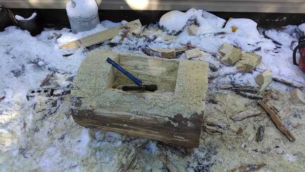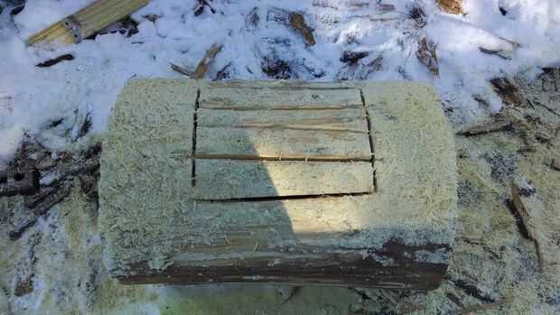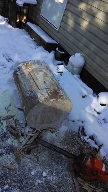 Necesita ahuecar el registro para dejar espacio para las tuberías. Cortar cuñas con una motosierra que yo entonces cincelado hacia fuera. Si no sabes cómo utilizar con seguridad una motosierra y luego este no es el proyecto para usted!