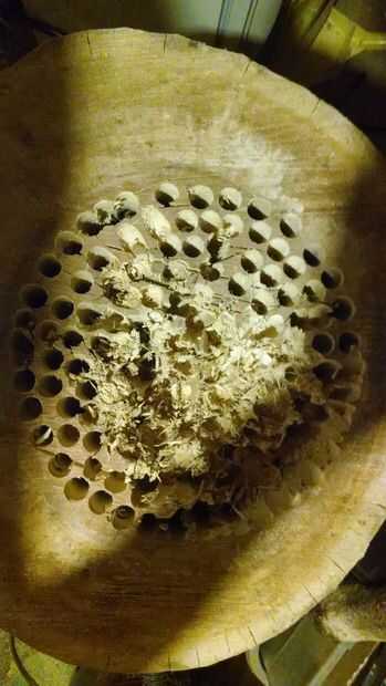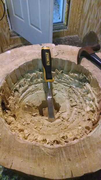 Mide la profundidad y tamaño de la cuenca y utiliza una broca de pala para comenzar a retirar el material. Luego usé un cincel para limpiar para arriba y crear un agujero para el drenaje. Tenga en cuenta que los cinceles están rematadamente afilados y golpear la mano repetidamente con un martillo lastima!