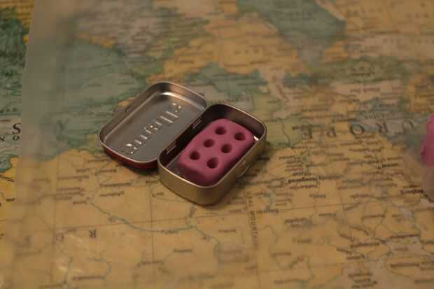 Coge una bola de Sculpey del tamaño de una canica grande. Convertirla en un rectángulo un poco más pequeño que el tamaño de la lata Altoids.