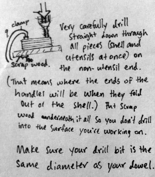 -Incluso puede medir la profundidad del taladro por calcular hacia fuera exactamente cuánto de la broca será cuando eres a través de su pedazo de la cáscara, y poner algunos masking Cinta justo encima de él, así que cuando usted está perforación abajo y llegar a la cinta, listo perforación. De esa manera no perfore a través de su madera.