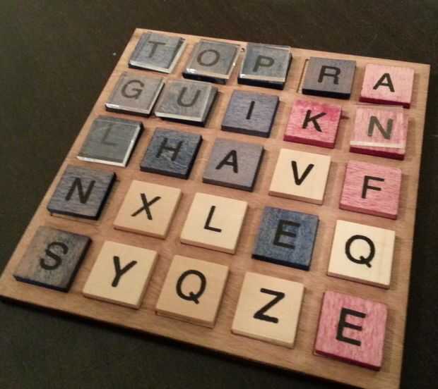 2. cada jugador selecciona un conjunto correspondiente de letras en su color y coloca las letras en su estante.