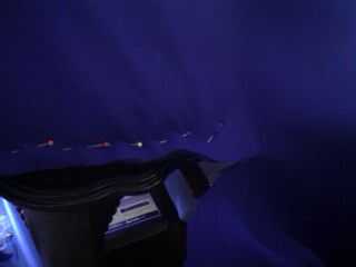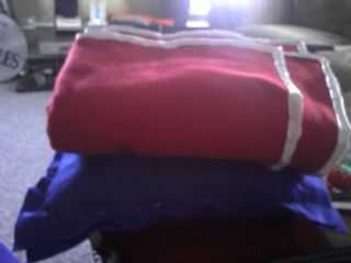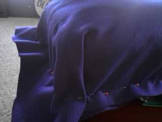 2. colocar a la tela encima de la manta. Alinear con uno o dos lados y dejar el resto a colgar.
