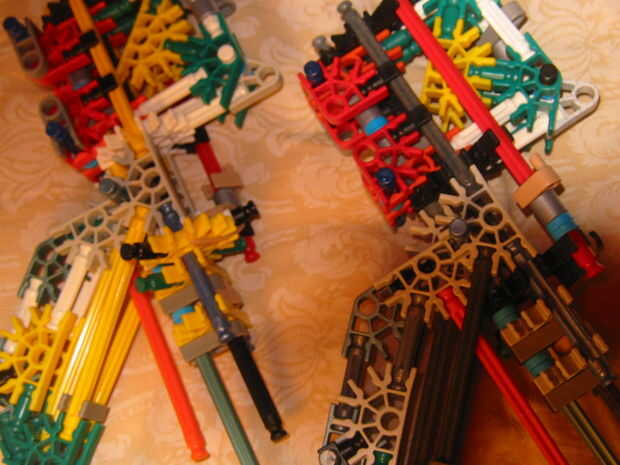 esta pequeña pistola K'nex es muy simple y utiliza solo 12 piezas (no incluye munición o una vista). No utiliza una banda elástica o bien.Paso 1: partes Arma:4 barras azul2 barras amarillas1 barra blanco2 conectores verdes1 conector amarillo3 conecto
