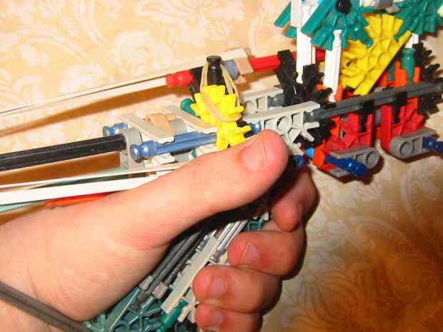 esta es el arma de K'nex construyó en un día o dos. No copio cualquier diseño si es lo que estabas pensando.No es automático, pero da un crapload de poder, ya que es un tipo de Tirachinas de pistola en lugar de un carnero.juego de instrucciones instr