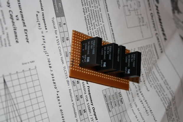 Los cuatro relés red a algunos Veraboard de la soldadura.