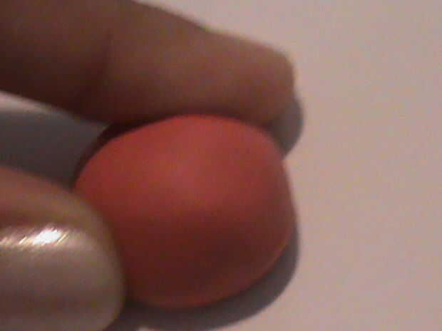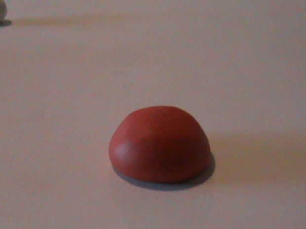 Ahora, toma la arcilla verde (o rojo) y rodar en una bola. Luego aplanarla. No totalmente, así que es una cúpula de igual forma en el medio. Ahora suave hacia fuera con los dedos.