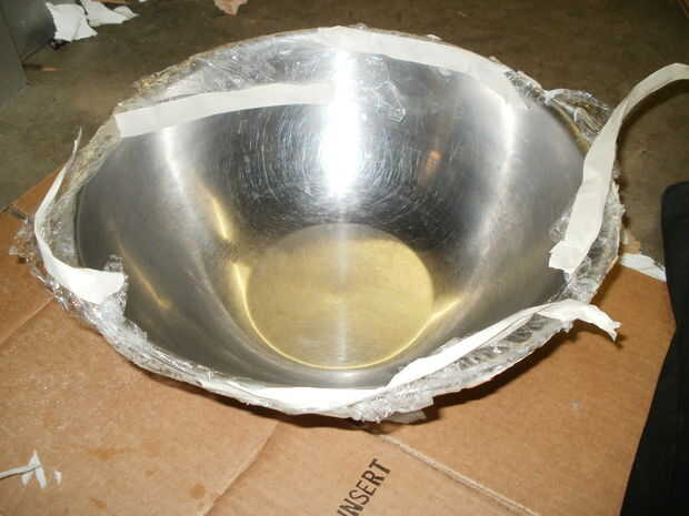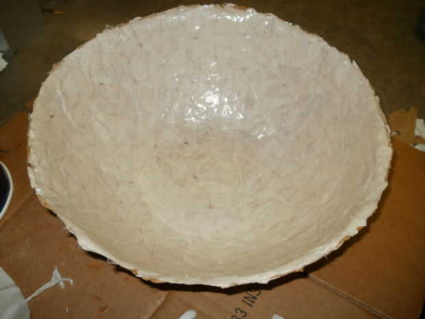 Para quitar el tazón de fuente de papel maché, primero quitar la cinta colocar la envoltura plástica para el tazón de fuente.  Intente deslizar el recipiente de papel maché.  Esto puede tomar un poco de paciencia pero va separado eventual. También si es utilizado un contenedor (que desea guardar para más adelante) para la base, separar el papel maché.  Retire cualquier envoltura de plástico colocada en el interior de papel maché.