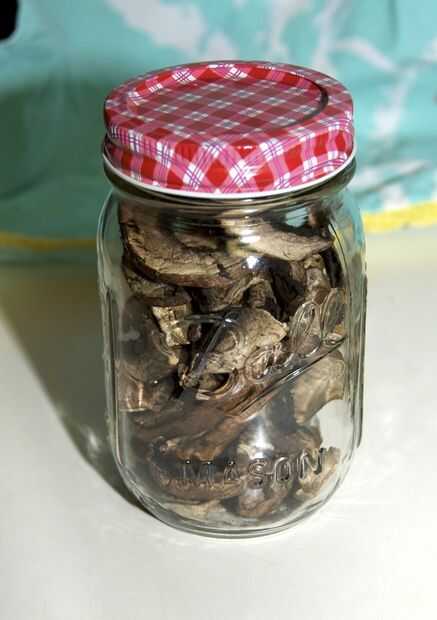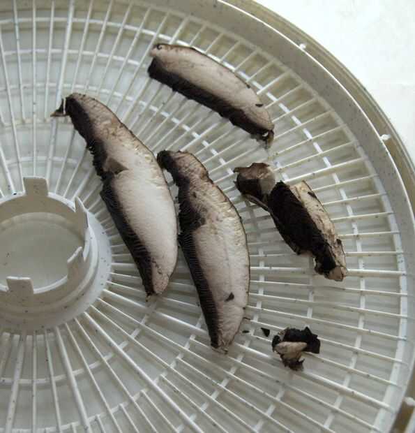 - Deshidratado a baja temperatura (por debajo de 115 grados, preferiblemente, para máximo retiene valor nutritivo) hasta por 8 horas - que es cuánto tiempo mío. Hongos que no son tan gruesos como portabellos se necesitan tiempos más cortos, así que asegúrese de comprobar. Deben ser luz y cuando se realizan en seco.
