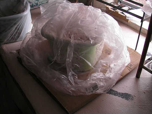 9. Cubre la canasta con la bolsa de basura.
