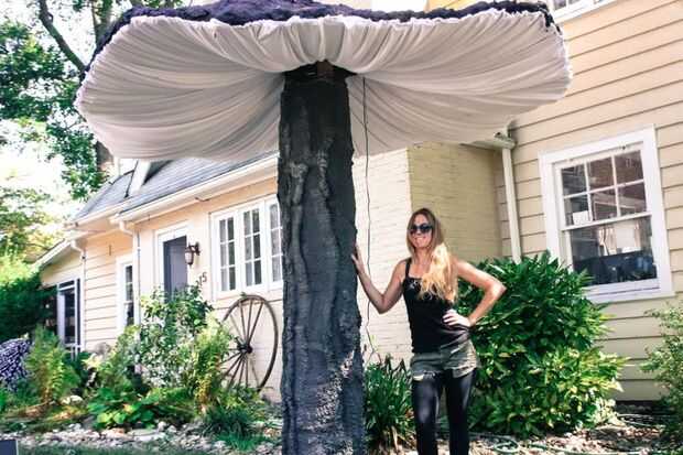 Había construido estas setas originalmente para mi jardín embrujado de Halloween anual. Pueden ser utilizados en una variedad de maneras aunque - para Alicia en el país de las maravillas temas, Dr. Suess temas, bodas, cine, festivales, fiestas en el jardín y mucho más. Estos van de setas gigantes en tamaño de 5 pies de altura a 10 pies de alto. Están hechas con madera, alambre de pollo, estopilla, parte 2-aerosol espuma, pintura y spandex.